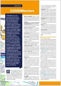 La revista Telecos.Cat en su edición de Julio 2020, incluye un artículo sobre las distintas iniciativas impulsadas desde COVIDWarriors con foco en uno de nuestros proyectos #ConectemosYa